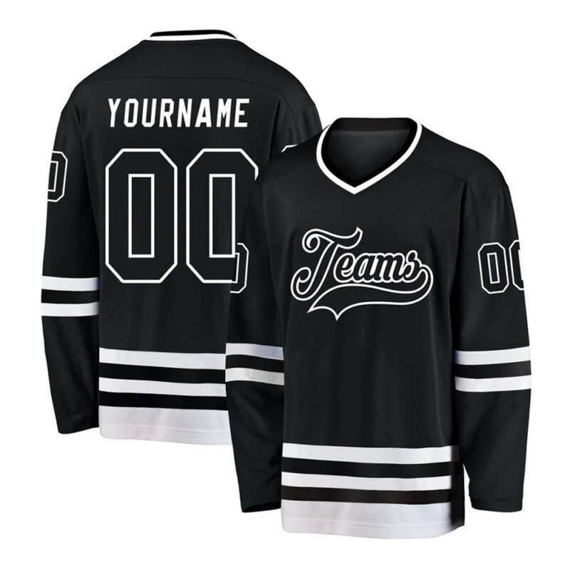 Custom Black Black-White Hockey Jersey