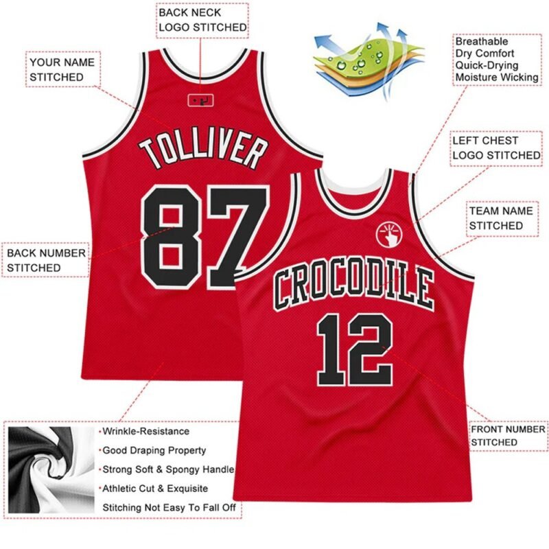 $23.98Custom Red Black-White Authentic Throwback Basketball Jersey