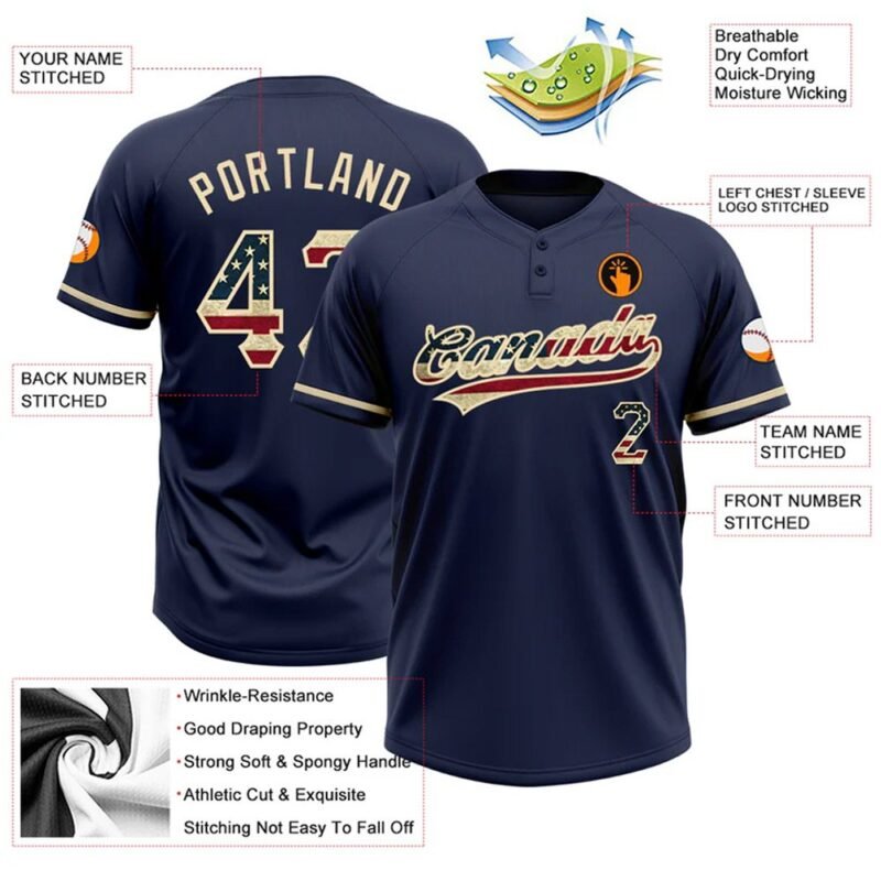 $27.99Custom Navy Vintage USA Flag-City Cream Two-Button Unisex Softball Jersey