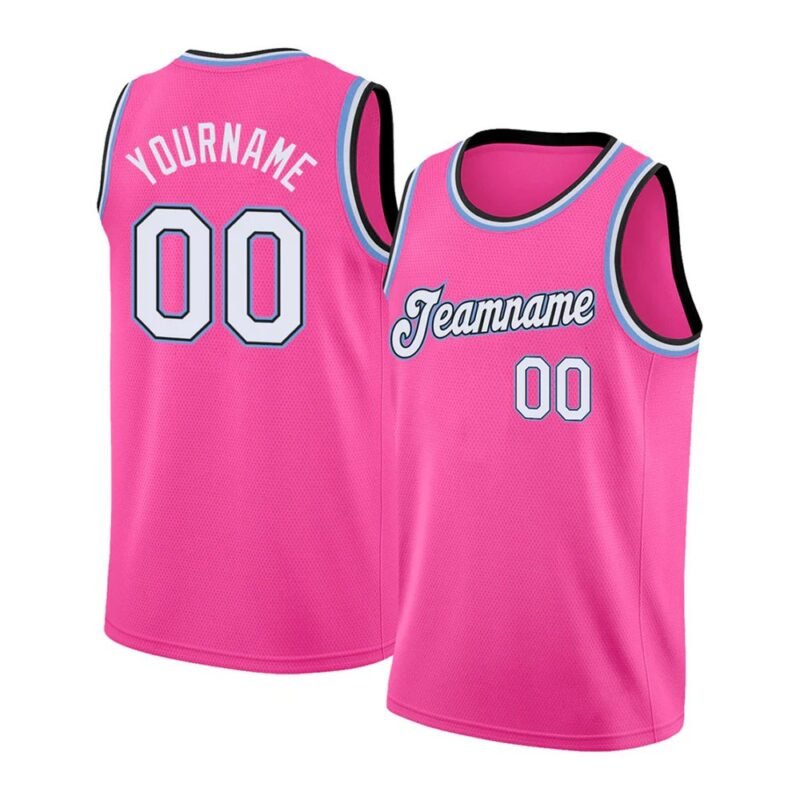 $27.99Custom Pink White-Light Blue Round Neck Rib-Knit Basketball Jersey