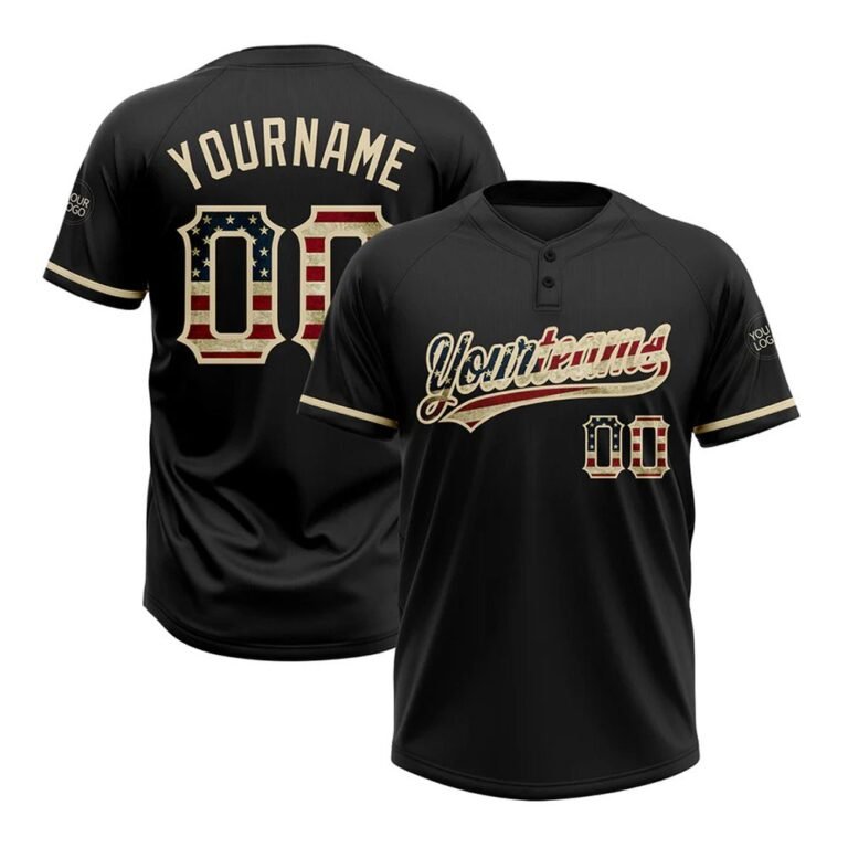 Custom Black Vintage USA Flag-City Cream Two-Button Unisex Softball Jersey