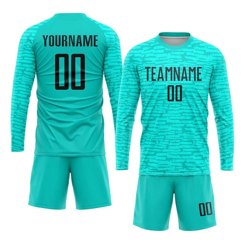 Custom Aqua Black Sublimation Soccer Uniform Jersey