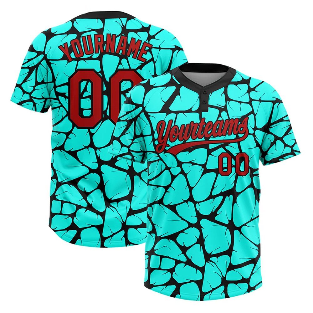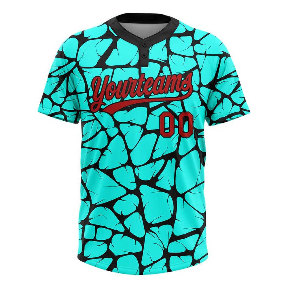 Custom Aqua Red-Black 3D Pattern Two-Button Unisex Softball Jersey