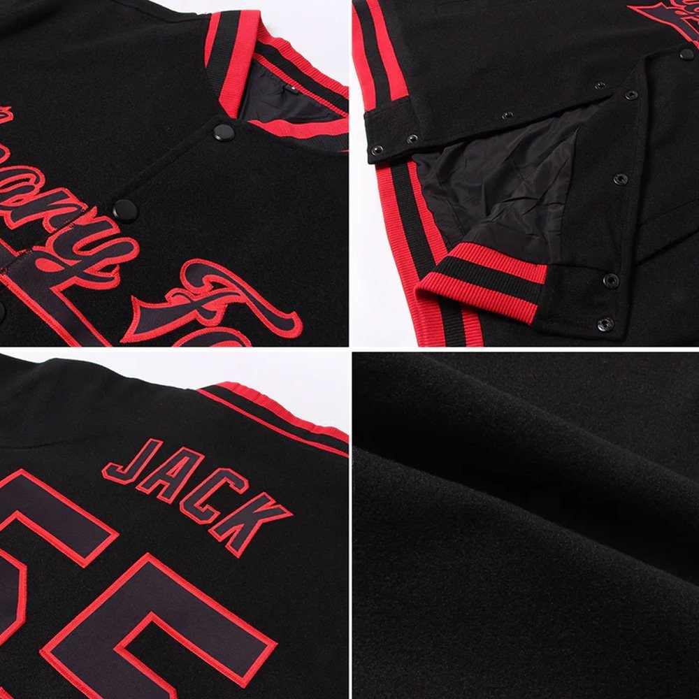 Custom Black Black-White Bomber Full-Snap Varsity Letterman Jacket