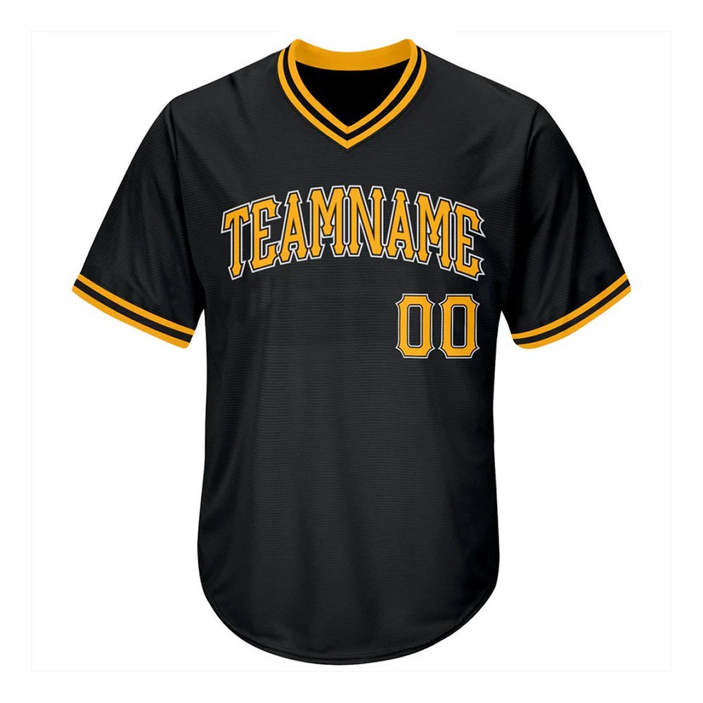 Custom Black Gold-White Authentic Throwback Rib-Knit Baseball Jersey Shirt
