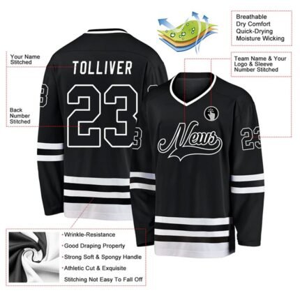 Custom Cream Black Hockey Jersey