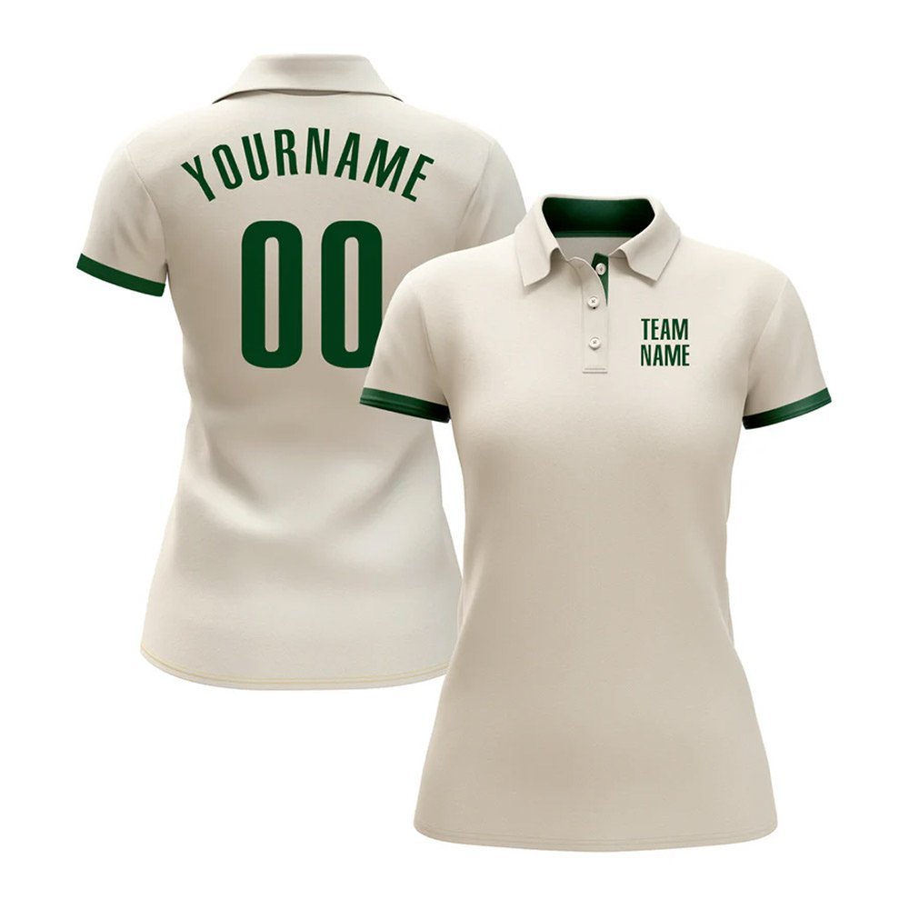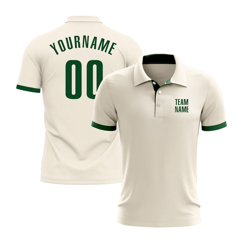Custom Cream Green Performance Golf Polo Shirt