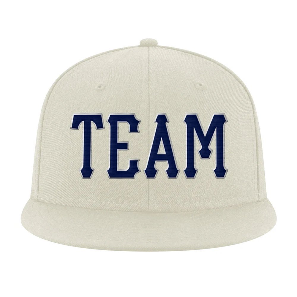 Custom Cream Navy-Gray Stitched Adjustable Snapback Hat