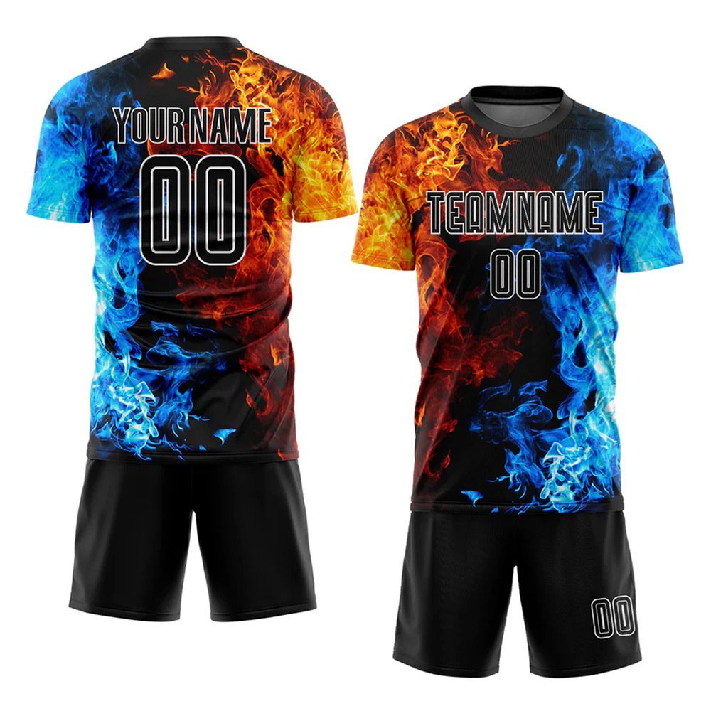 Custom Figure Black-White Flame Sublimation Soccer Uniform Jersey