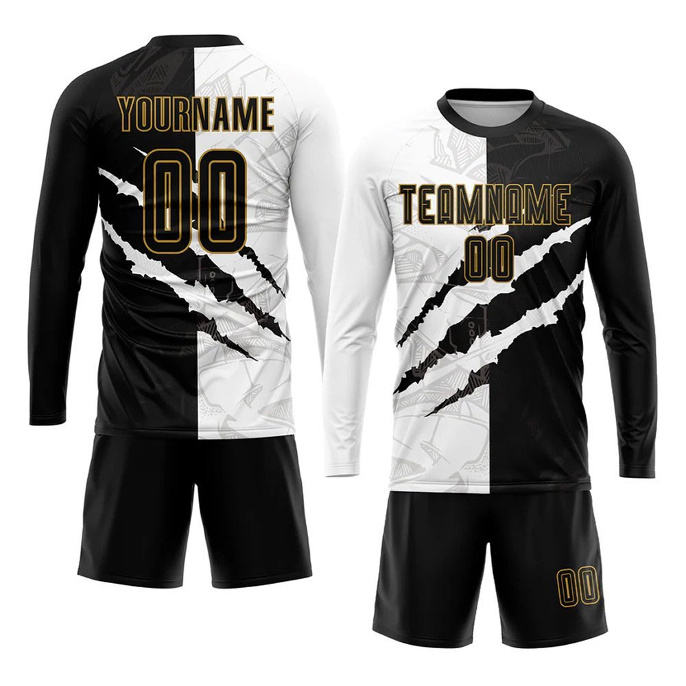 Custom Graffiti Pattern Black-Old Gold Scratch Sublimation Soccer Uniform Jersey