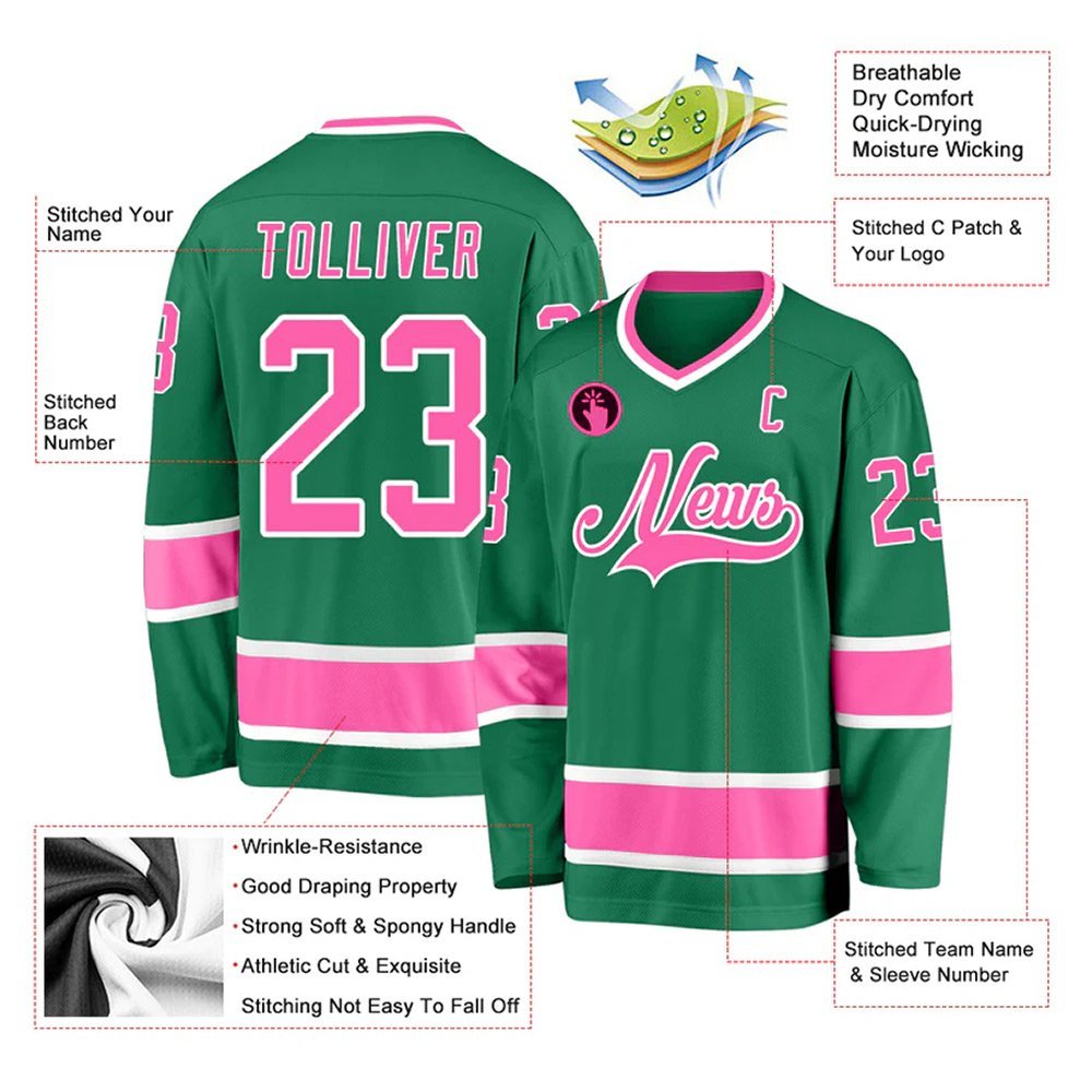 Custom Kelly Green Pink-White Hockey Jersey