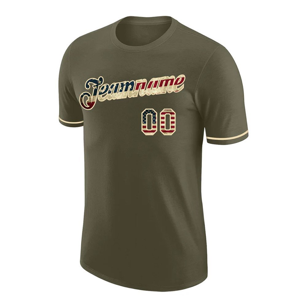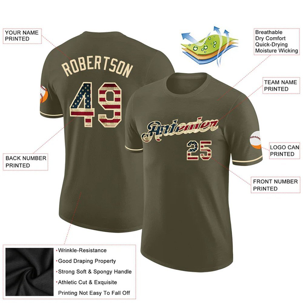 Custom Olive Vintage USA Flag-Cream Performance Salute To Service T-Shirt