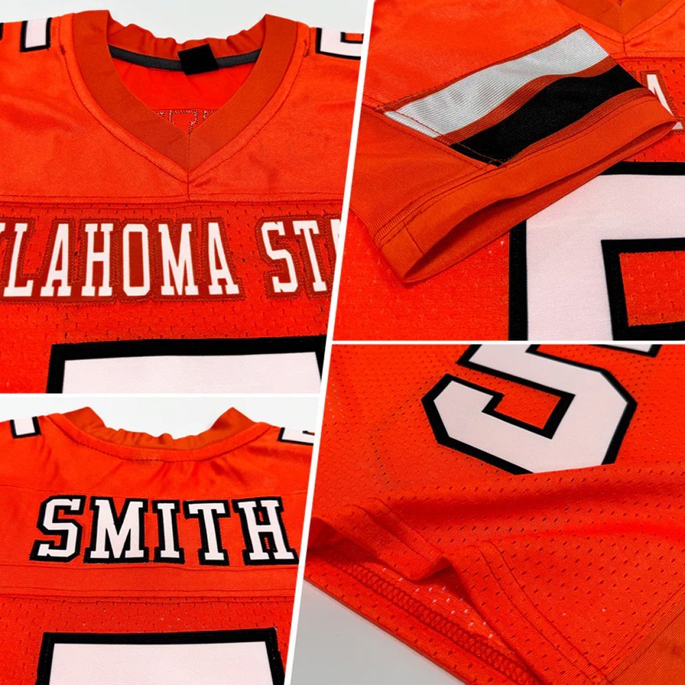 Custom Orange White-Black Mesh Authentic Football Jersey
