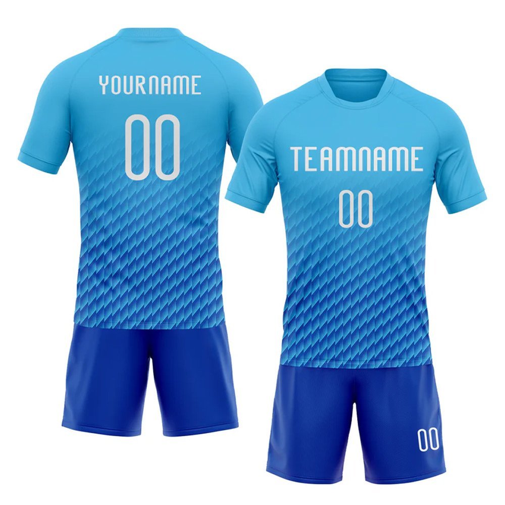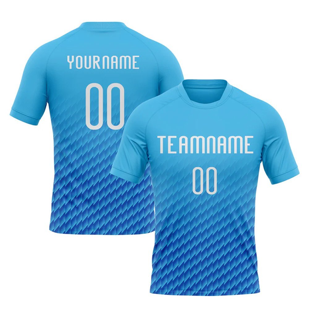 Custom Sky Blue White-Thunder Blue Geometric Shape Sublimation Volleyball Uniform Jersey