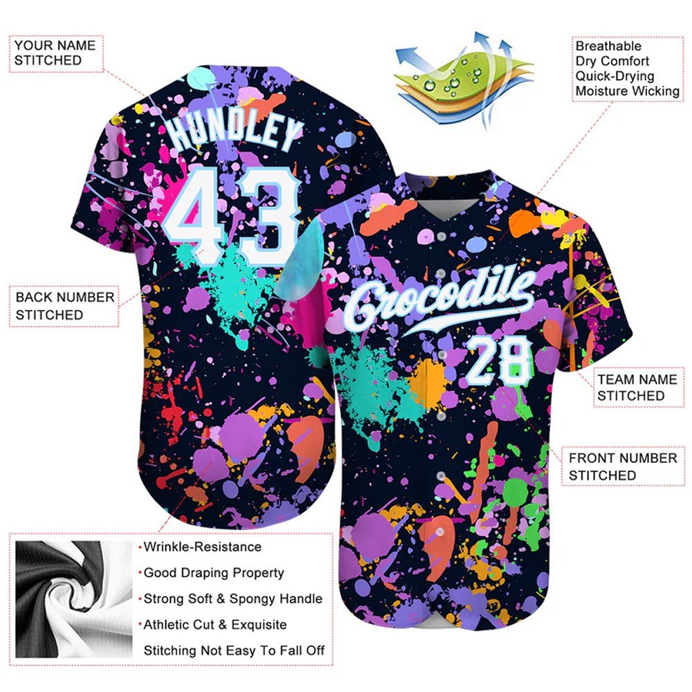 Custom Splashes Graffiti Pattern White-Light Blue 3D Authentic Baseball Jersey
