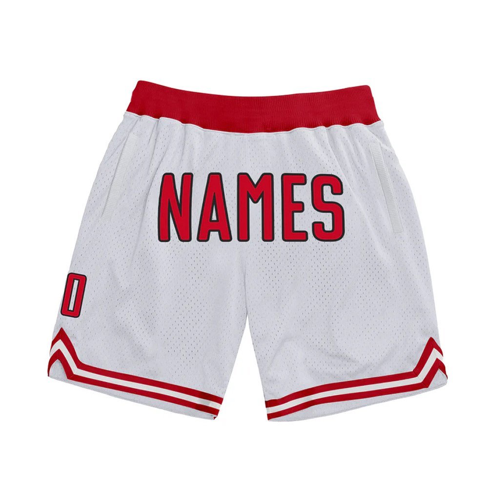 Custom White Red-Black Authentic Throwback Basketball Shorts