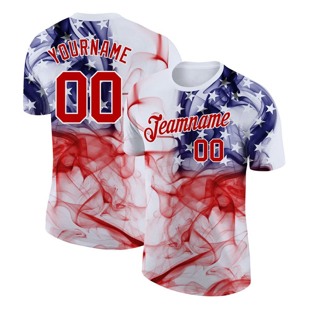 Custom White Red-Purple 3D American Flag Performance T-Shirt