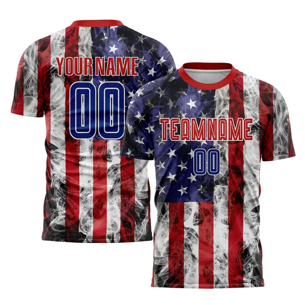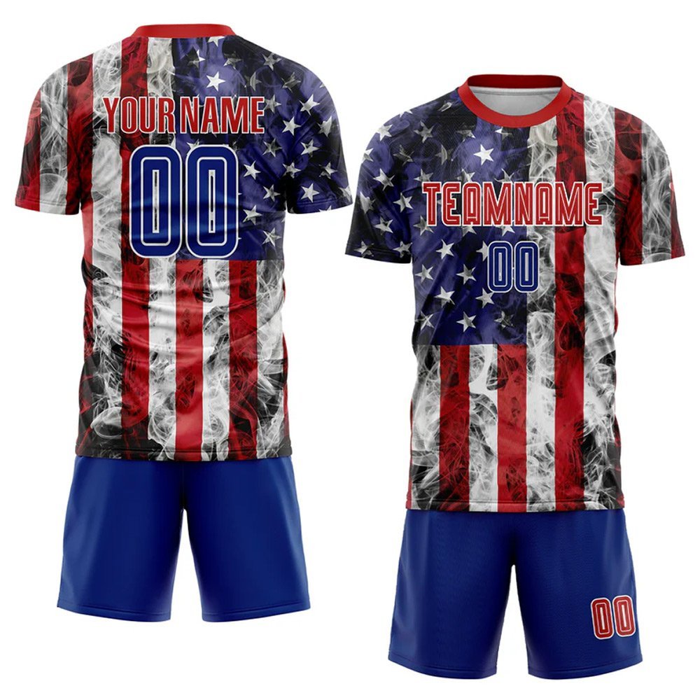Custom White Royal-Red American Flag Fashion Sublimation Soccer Uniform Jersey