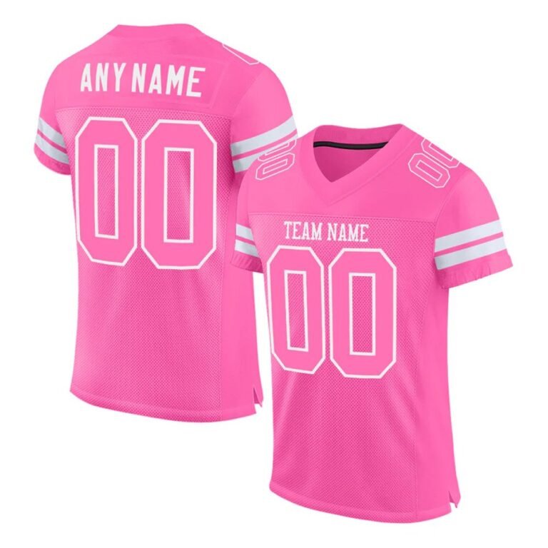 Custom Pink Pink-White Mesh Authentic Football Jersey